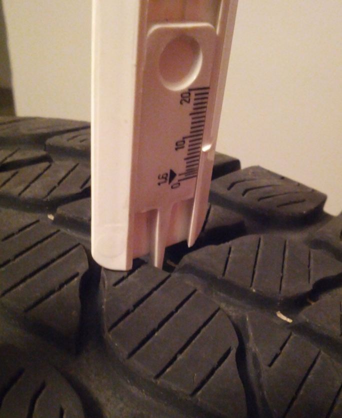Die Winterreifen sind in einem guten Zustand und haben noch 6mm Profil, die Alufelgen sind ebenfalls in einem guten Zustand (eine Felge hat einen Kratzer - siehe Bild). Die Felgen müssten eventuell gereinigt werden. Die Radbolzen sind etwas verrostet.